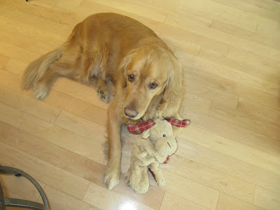 George is an "assist" dog at Bethesda (he worked at Walter Reed when I was there) and came to stay with me recently for a weekend. He is probably the best therapist I know. He is loving, kind, knows to wait for you on stairs, and doesn't snore. He also keeps his toys in a neat pile on his sleeping bag.